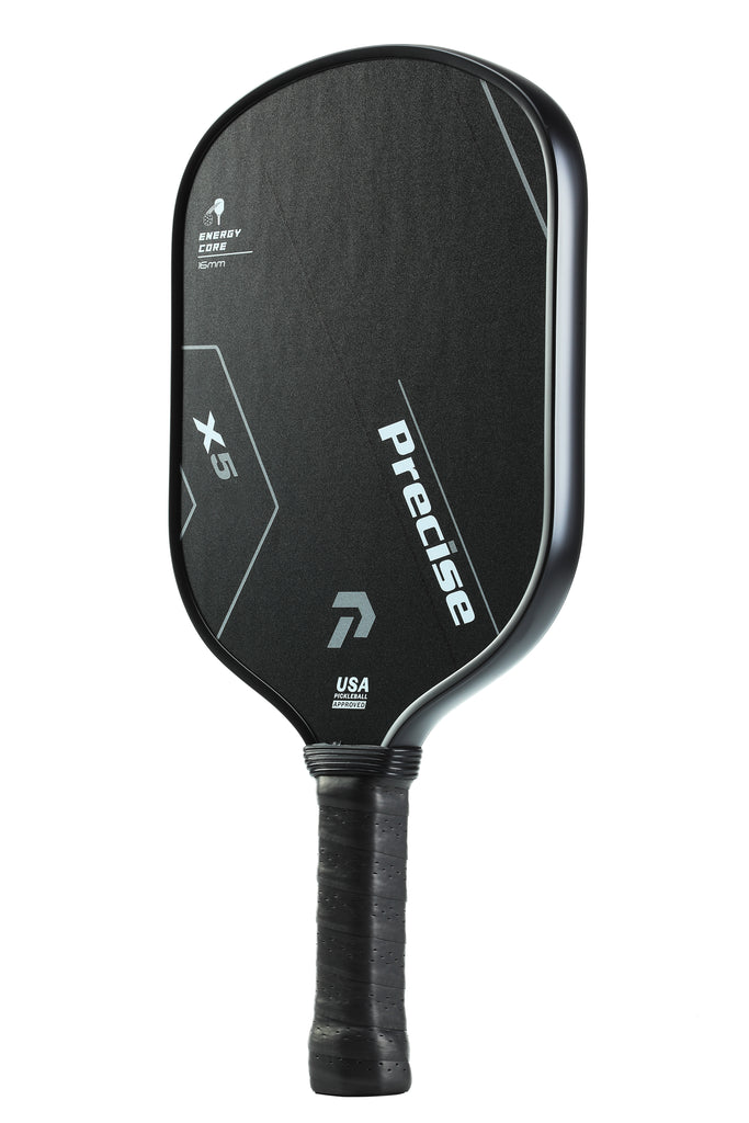 The Precise X5 Pickleball Paddle is engineered for players who demand control, spin, and consistency. Featuring a T700 matte carbon fiber face for maximum spin, a responsive 16mm energy core for power and feel, and a cushioned comfort grip for all-match confidence, the X5 delivers tournament-ready performance for indoor and outdoor play. USAPA approved and built to elevate advancing beginners through competitive players.