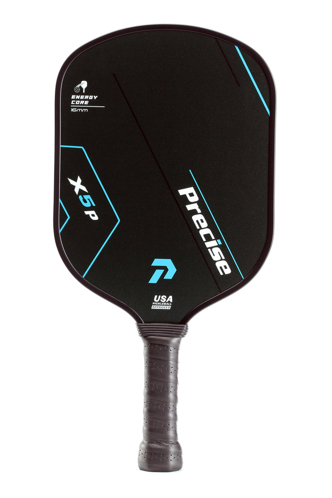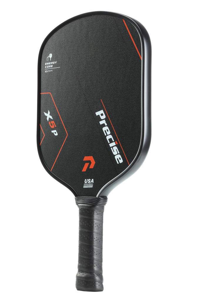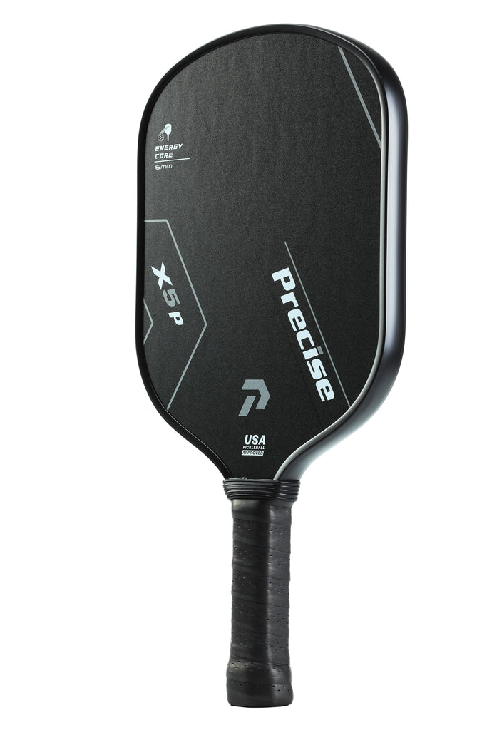 Designed for effortless speed and confident power, this Precise X5p Pickleball paddle features a smooth T700 carbon fiber face paired with a responsive 16mm energy core for crisp drives, fast volleys, and a forgiving sweet spot. Finished with an enhanced comfort grip for stable two-handed play, it delivers a balanced blend of power and touch in a tournament-ready, USAPA-approved design.